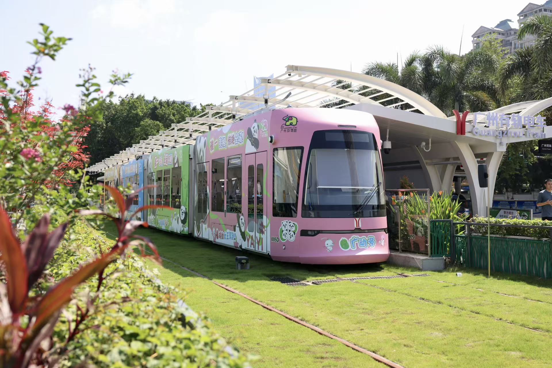 据悉,“广动号”大熊猫主题有轨电车将持续运营至十五运会和残特奥会结束。列车共四节车厢,采用黄、蓝、绿、粉等明快的“多巴胺”配色,将全运项目与熊猫特点巧妙融合,呈现广州动物园“星一”“雅一”和新成员“久久”“友友”4只大熊猫的独特个性。